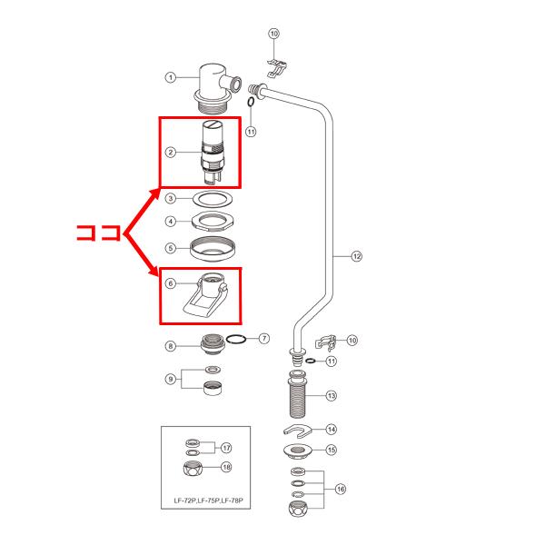 LIXIL,INAX,A-2003,ピストンカートリッジ,プッシュ式自閉水栓用(プッシュレバーが上部吐水口に付く手洗用)