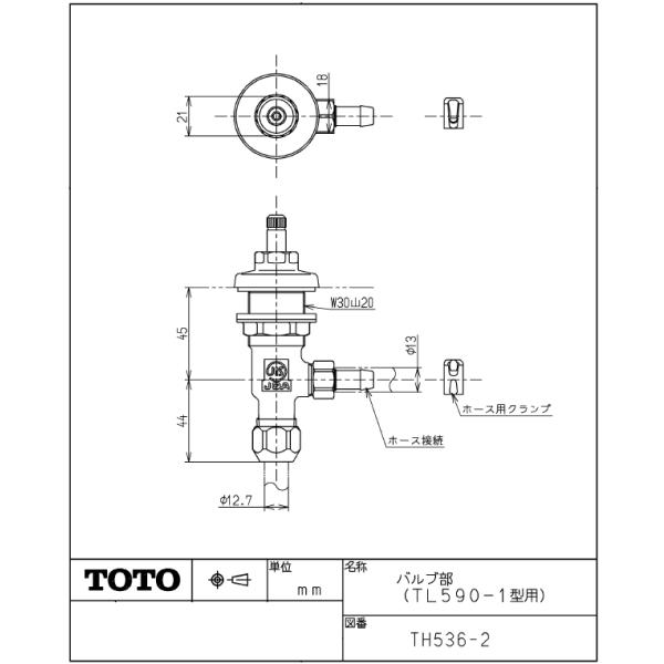 TOTO,TH536-2,バルブ部,埋込み手洗い器用,TL590型ハンドル式水栓用
