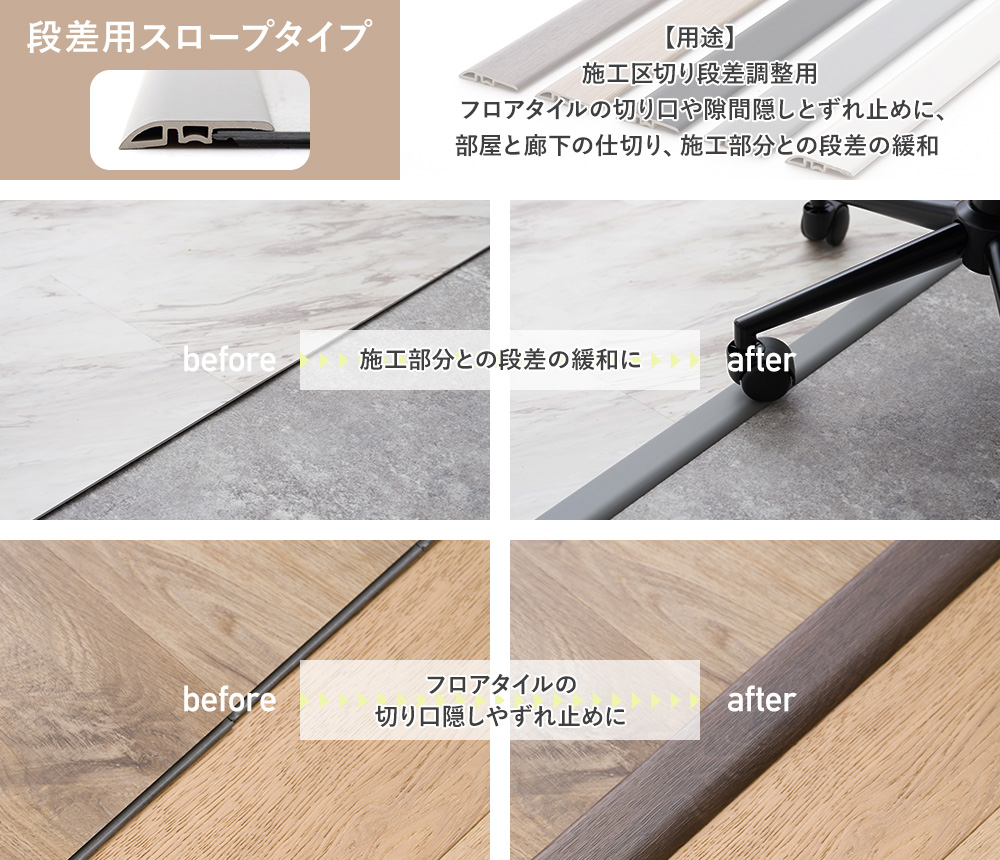 見切り材 段差用 スロープタイプ 120cm フロアタイル 4〜5mm厚対応 オリジナル見切り材 C-F-3