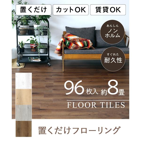 アウトレット フロアタイル 置くだけ 8畳 木目 フローリング 96枚 8畳用 | フロアータイル 木目調 フロアシート 敷くだけ フロアマット タイル 賃貸 床 DIY
