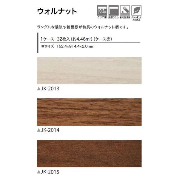 【ケース売】2mm厚床材 ウォルナット 152.4×914.4×2.0mm JK2013 JK2014 JK2015 サンゲツ フロアタイル 2mm厚 「SANGETSU FLOORTILE 2023-2026」