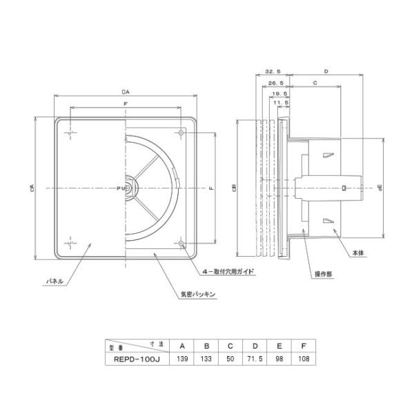 バクマ工業 REPD-100J 自然給気用 樹脂製プッシュ式レジスター 操作部脱着式
