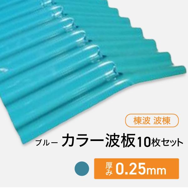 カラー波板トタン 棟波 波棟 厚み:0.25mm 10枚セット ブルー 送料無料 波板 トタン トタン板 波板トタン カラートタン トタン波板