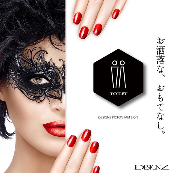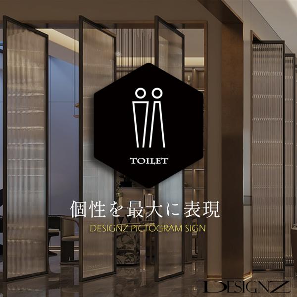 【DESIGNZ】デザインズピクトグラムサイン TYPE-G:ヘキサゴン (TOILET)(ブラック) アクリル素材 (両面テープ付) オシャレ空間を演出するピクトグラム 日本製