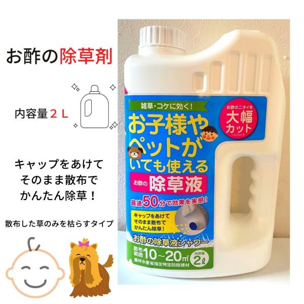除草剤 お酢の除草剤 2L 雑草やコケに! お酢のニオイ大幅カット 雑草対策 草むしり 草 雑草 速効 庭 手入れ ガーデニング 液状 ストレートタイプ 送料無料