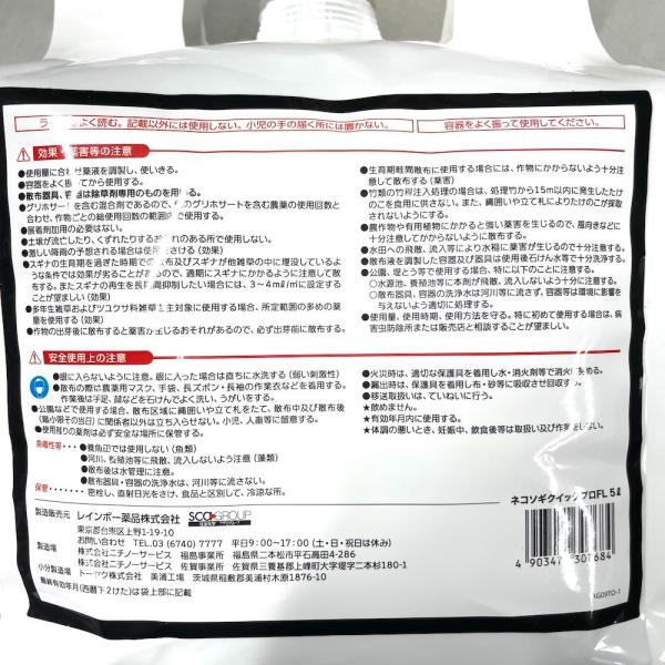 除草剤 強力 ネコソギクイックプロFL 液体 5L 12,500平米まで 業務用 即効 速攻 レインボー薬品 スギナ ササなど対応