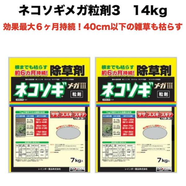 除草剤 強力 顆粒 ネコソギメガ粒剤3 7kg×2袋 14kg 業務用 土壌処理型 レインボー薬品 効果6ヶ月 草丈40cmまで