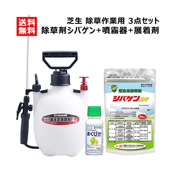 除草剤 シバゲン 工進 噴霧器 4L HS-401E 展着剤まくぴか100ml 芝生 除草作業用 3点セット
