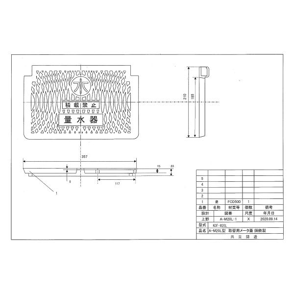 寸法:210×357mm 三国プラスチック・アロン化成対応 鋳鉄製 補修蓋 メーターボックス 蓋FRP製 蓋割れ 代替 T8 耐荷重 8t 水道管 20mm用 蓋のみ KDF-M20L