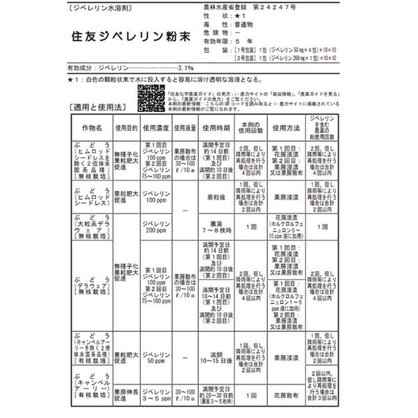 住友ジベレリン粉末 1.6g(ジベレリン50mg)×4包