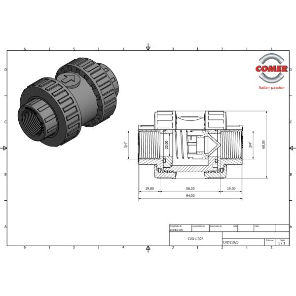 PVC製 逆止弁(チャッキバルブ)両側ユニオン式 CVD-20 20mmメスネジ (3/4”) 両側ユニオン式で液肥混入器 配管 バイパス等に便利