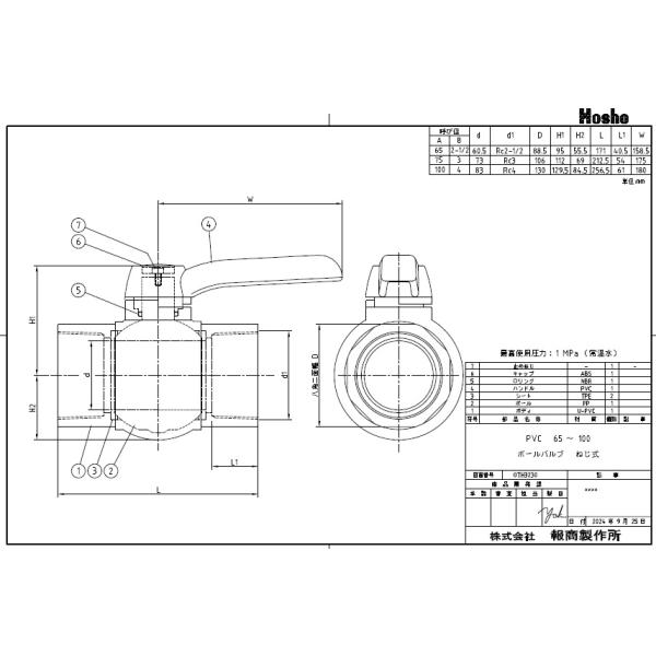 報商 PVC ボールバルブ 75A ネジ式 75mm 樹脂製 ボール弁 グローブバルブ 玉型弁 ボールコック 止水バルブ 止水コック 通水バルブ 通水コック 塩ビ管