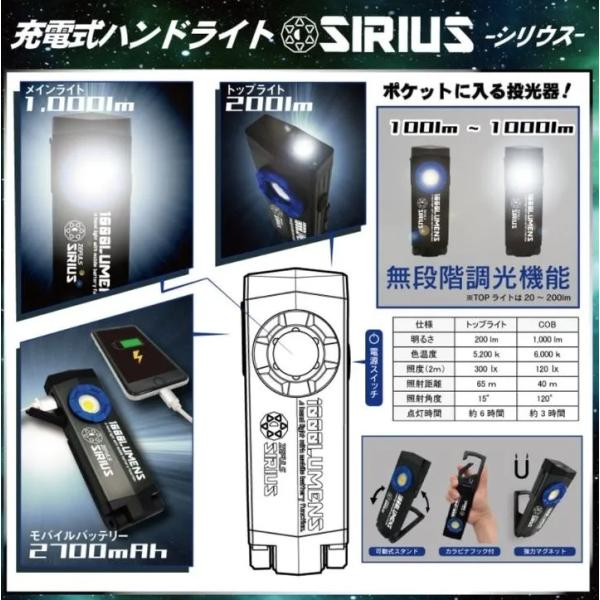 ゼフルス ZA-SR1000 充電式ハンドライト SIRIUS シリウス バッテリー式LEDライト ZEFULS 400878 。