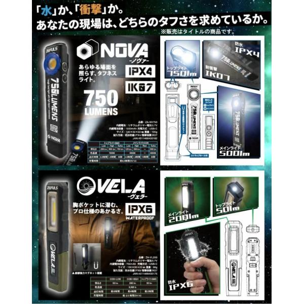 ゼフルス ZA-VL200 充電式ハンドライト VELA ヴェラ 防水IPX6 ZEFULS 400175 ネコポス可 。