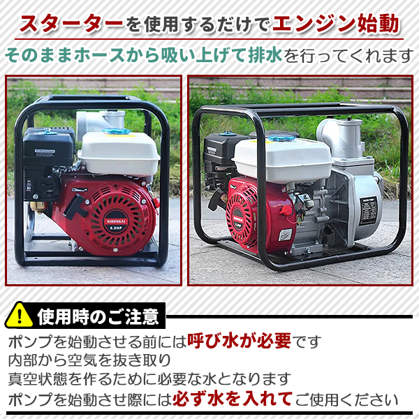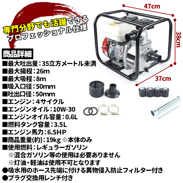 エンジンポンプ 水中ポンプ 4サイクル 給水ポンプ レギュラーガソリン 口径50mm 揚水 排水 灌漑