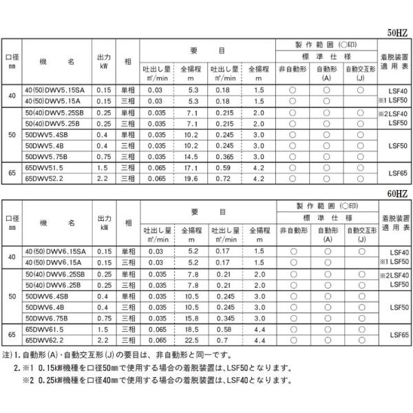 エバラポンプ 自動型 水中ポンプ 汚物用 排水ポンプ 50DWVA6.25SB 50DWVA6.25B 50DWVA5.25SB 50DWVA5.25B 100V 200V 0.25kw 50mm 浄化槽ポンプ