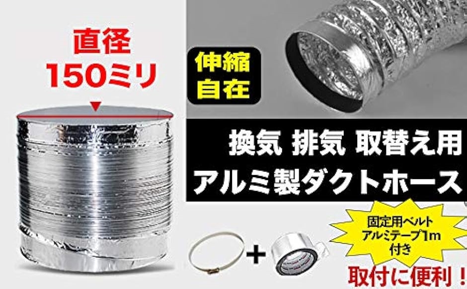【Yahoo!ランキング1位入賞】換気 ダクトホース 排気 送風機用 蛇腹ダクト 取付金具 ステンレス製ホースバンド( 3メートル)