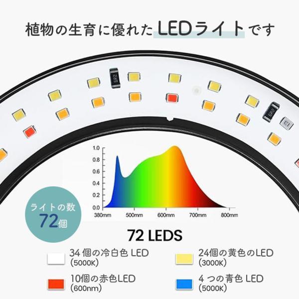 植物育成ライト LED タイマー 植物育成LED 観葉植物育成ライト 10階段調光 72LEDランプ 太陽光 室内栽培ライト 光補足 日照不足解消