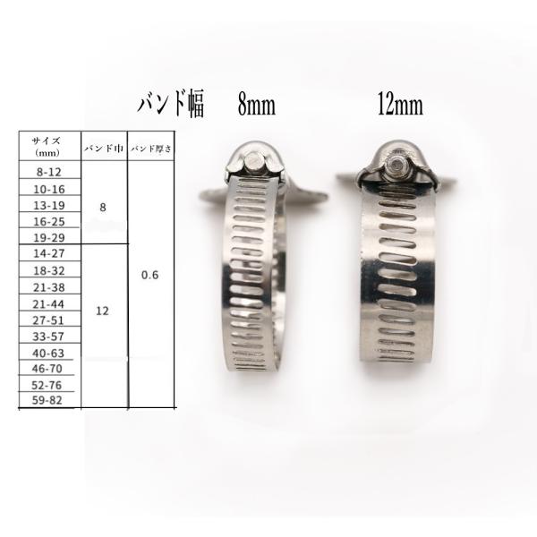 手締めホースバンド 304ステン Φ8mm〜82mm 全15サイズ (1サイズ2個)