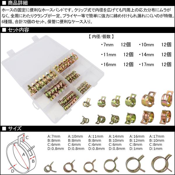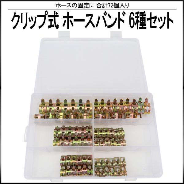 クリップ式 ホースバンド 6種類 72個 セット ケース入り ホースの固定に I-511