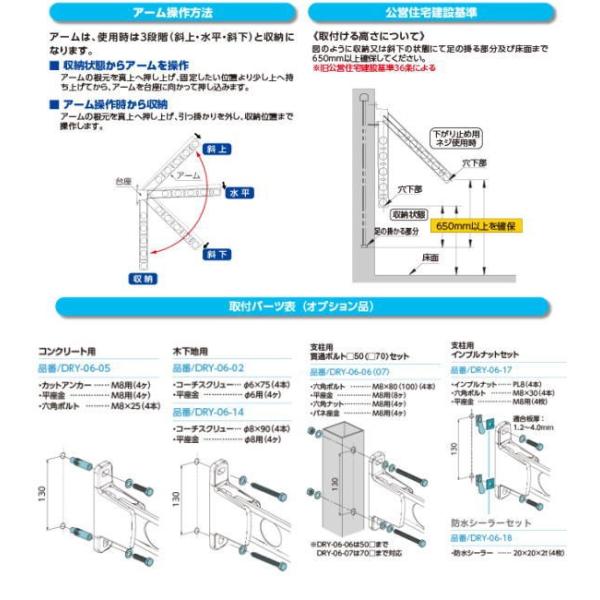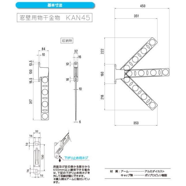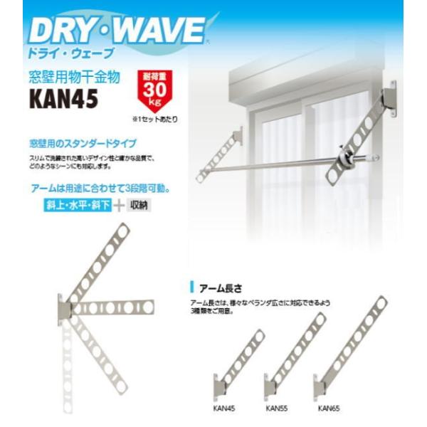 窓壁用物干金物 タカラ産業 DRY・WAVE(ドライ・ウェーブ) KAN45 1セット2本組/アーム長さ水平時450mm 斜上・水平・斜下・収納4方向可動