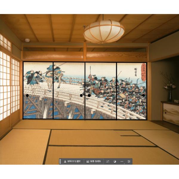 デザイン襖紙 広重 「両国引取」 4枚組 (襖/ふすま紙/モダン/和紙/おしゃれ/張替)