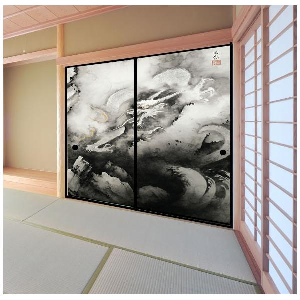 デザイン襖紙 「龍興而致雲」 2枚組 (襖/ふすま/ふすま紙/龍/龍神/和紙/おしゃれ/張替)