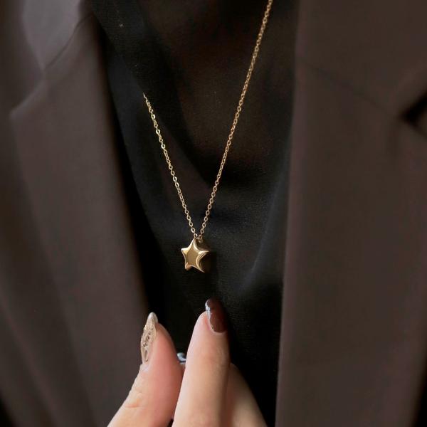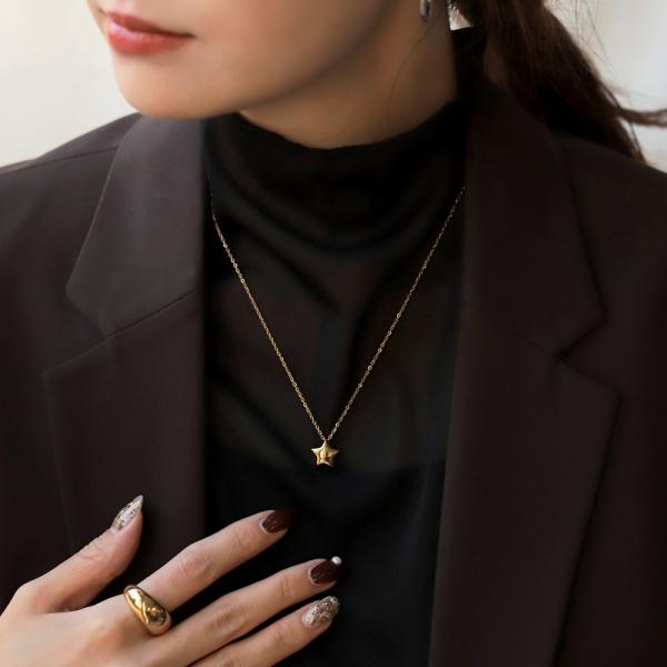 【全品ポイント5倍!】サージカルステンレス ネックレス 金属アレルギー つけっぱなし チェーン 星 スター メタル ぷっくり 小さめ 小ぶり