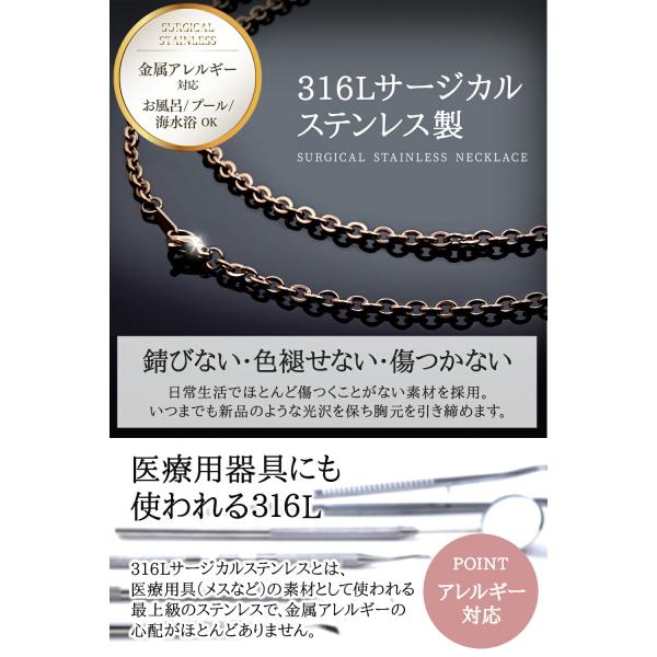 ネックレスチェーン メンズ レディース 316L 金属アレルギー対応 サージカル ステンレス ネックレス チェーン シンプル 平あずき ピンクゴールド 送料無料