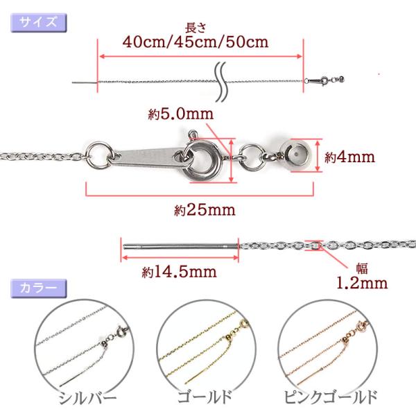 ネックレスチェーン ステンレス製 スライド式 アジャスター 1.2mm あずきチェーン 40cm/45cm/50cm チェーンのみ 無段階調整 金属アレルギー対応 レディース