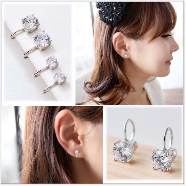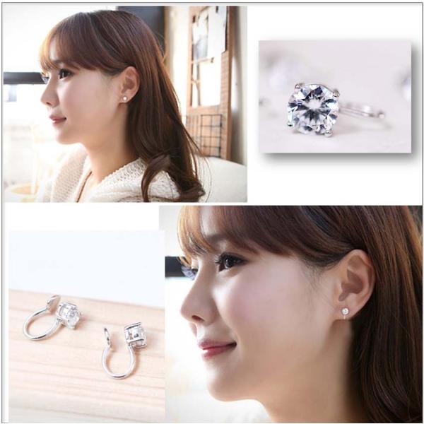 イヤーカフ 2個セット イヤリング ノンホール ピアス 挟む 大ぶり キュービックジルコニア CZ レディース アクセサリー 両耳 シルバー ac111