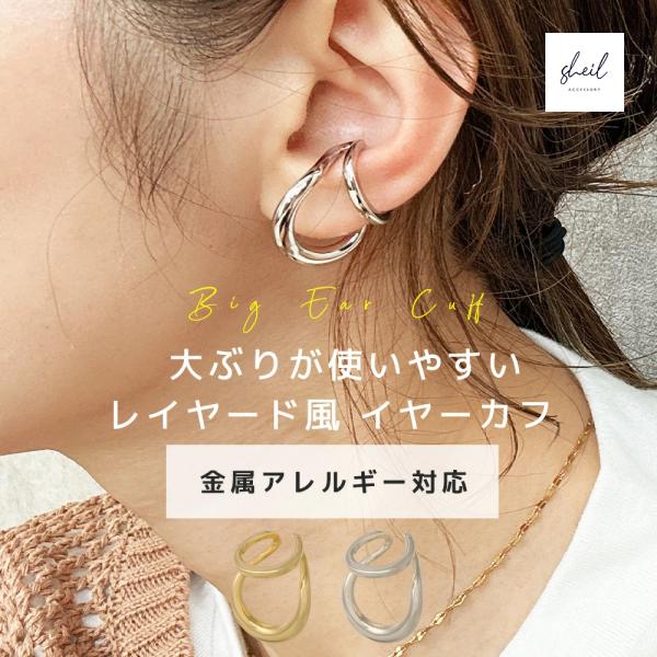 イヤーカフ イヤカフ イヤーカフス 大ぶり レイヤード 重ね付け風 レディース シルバー 金属アレルギー 軽量 可愛い 爆買