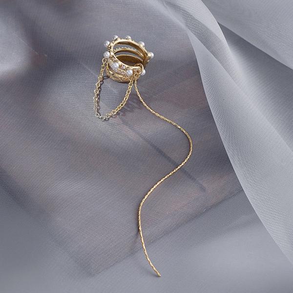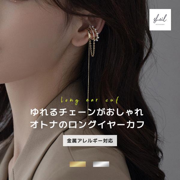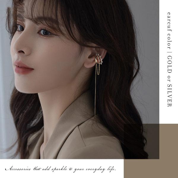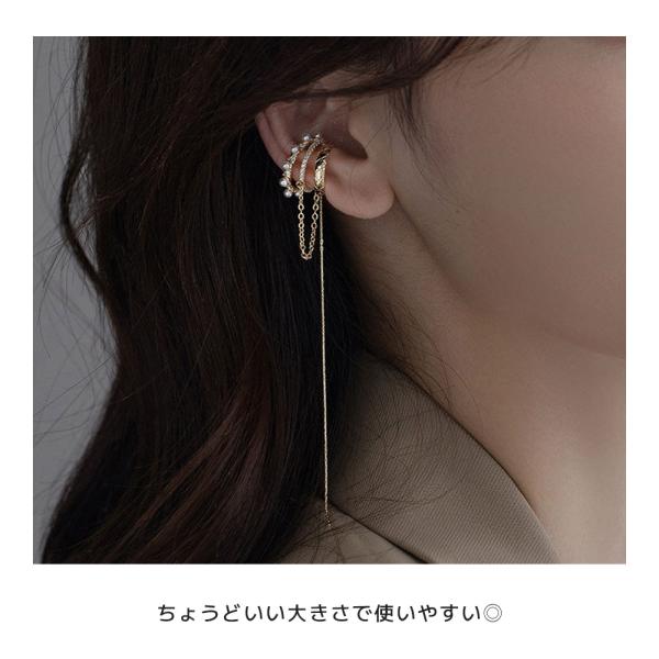 イヤーカフ 金属アレルギー 揺れる ロングチェーン 重ね付け 大ぶり イヤカフ 片耳用 レディース ストーン シンプル 爆買
