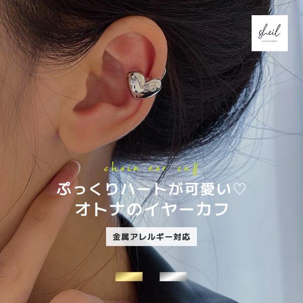 イヤーカフ 金属アレルギー ハート ゴールド シルバー 重ね付け 大ぶり イヤカフ 片耳用 レディース シンプル 大人 爆買