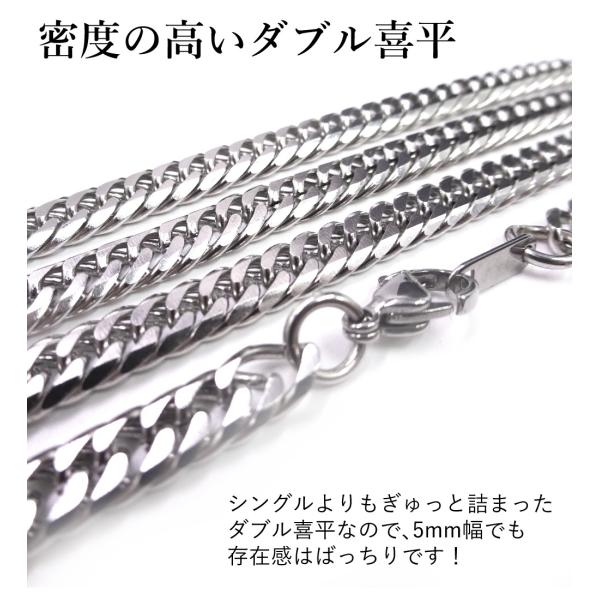 日本製 ダブル喜平 ネックレス 6面カット チェーン サージカルステンレス アレルギー対応 幅 5mm
