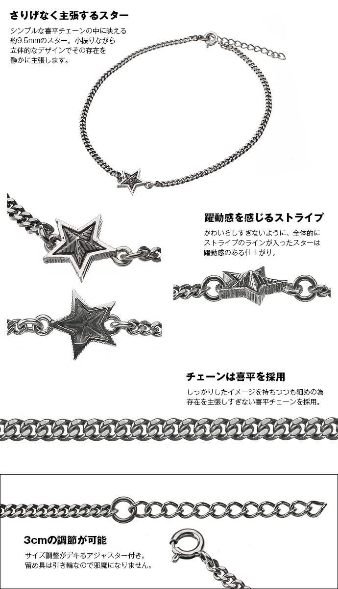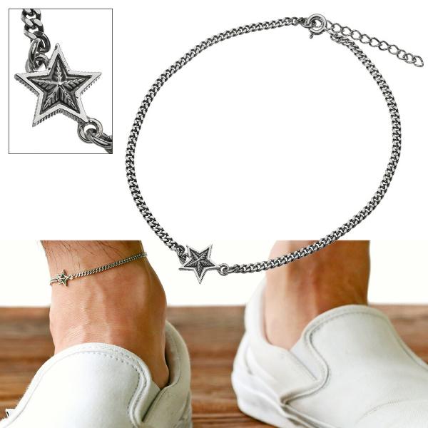 星型 スター アンクレット 喜平チェーン メンズ レディース シルバー925 シンプル 足首 細め シルバーアクセサリー お揃い カップル 男性 女性 ペアアクセサリー