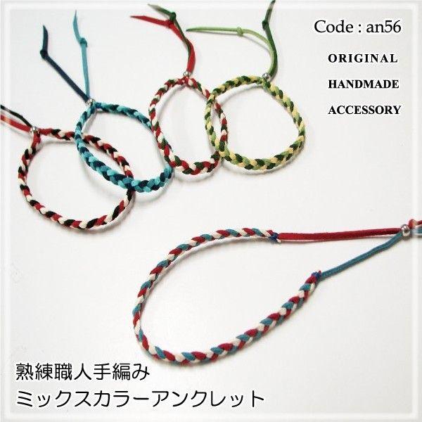 アンクレット 熟練職人 3つ編み ミックスカラー レザーアンクレット an56 メンズ レディース