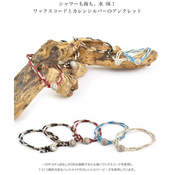 アンクレット メンズ/レディース/ミサンガ/ペア可/シルバー/ワックスコード (2連コンチョ)/8287