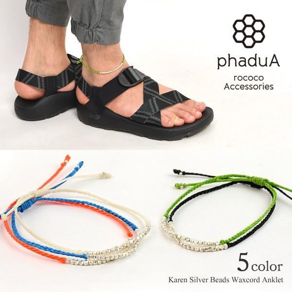 phaduA(パ・ドゥア) カレンシルバー ビーズ ワックスコード アンクレット / メンズ / レディース / ミサンガ / ペア可