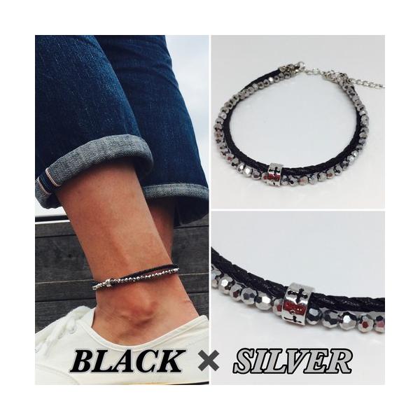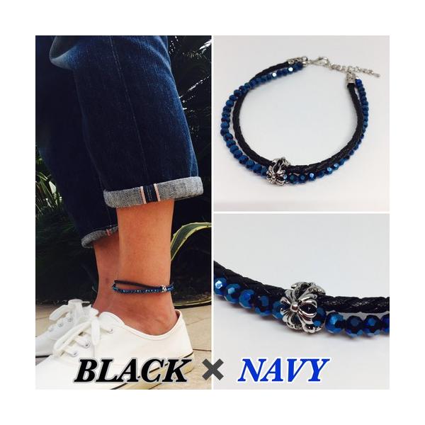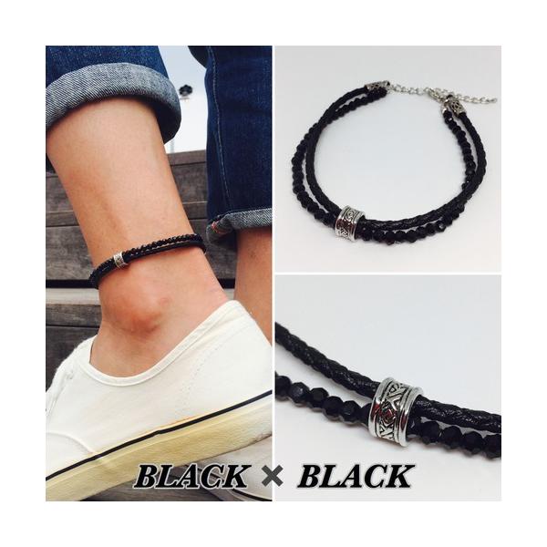 アンクレット メンズ ブラックスピネル メンズアンクレット 2連 パワーストーン 天然石 レディースアンクレット ペア シルバー ブラック ネイビー