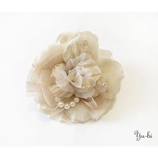 【定形外郵便OK】コサージュ/パール&ラインストーン 上品 レース 花 リボン コサージュクリップ c47☆ホワイトベージュ/入学式 卒業式