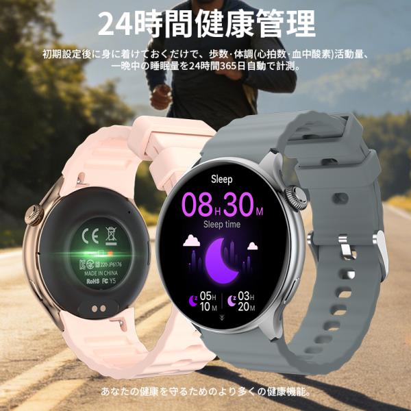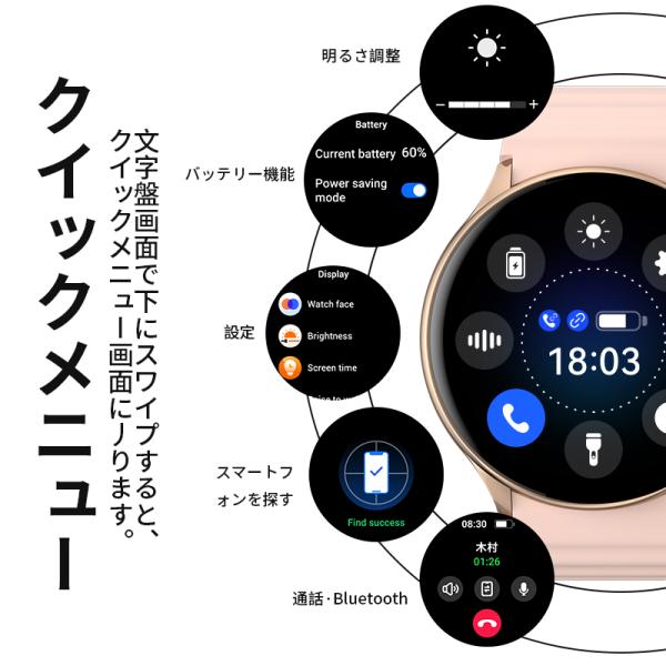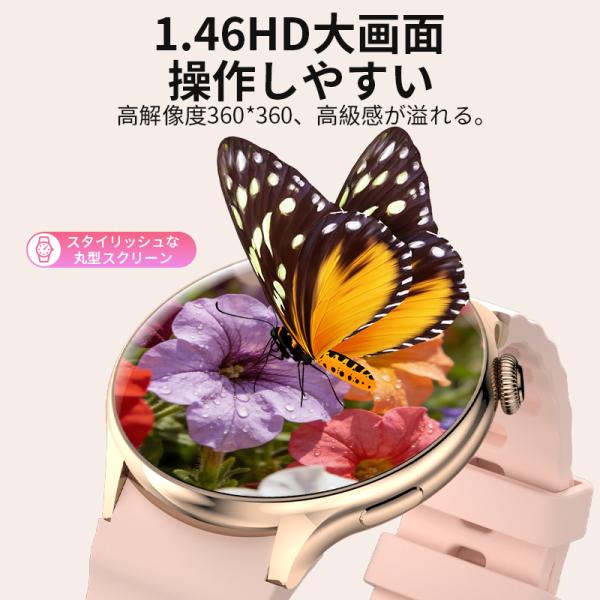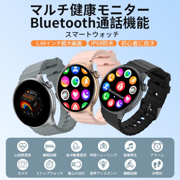 スマートウォッチ 1.46インチ大画面 Bluetooth5.4通話機能 腕時計 着信通知 血中酸素 心拍数 iphone android対応 IP68防水 丸型 活動量計 歩数計 プレゼント