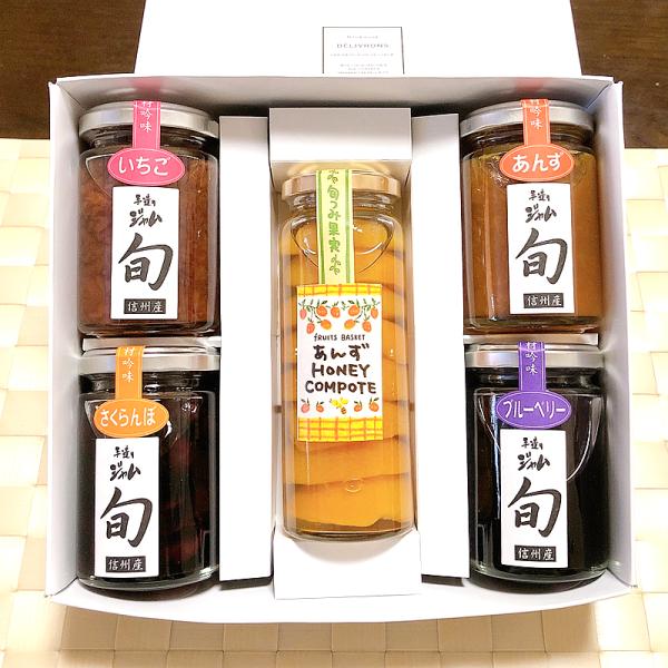 ハニーコンポート1本・旬ジャム4本セット 送料無料 長野県産 信州果実ジャム 果物 くだもの フルーツ ギフト 食べ物 2026 お歳暮 内祝い 冬ギフト