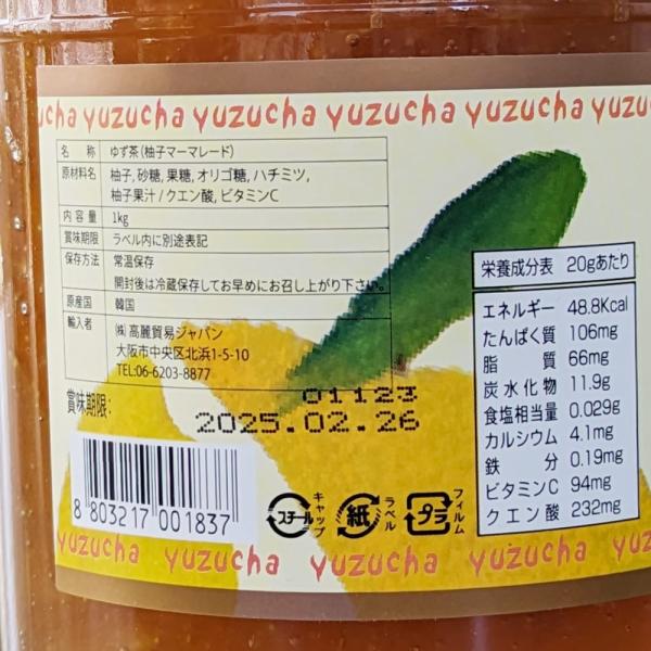 高麗貿易 柚子茶 1kg 韓国産 ゆず茶 ジャム マーマレード