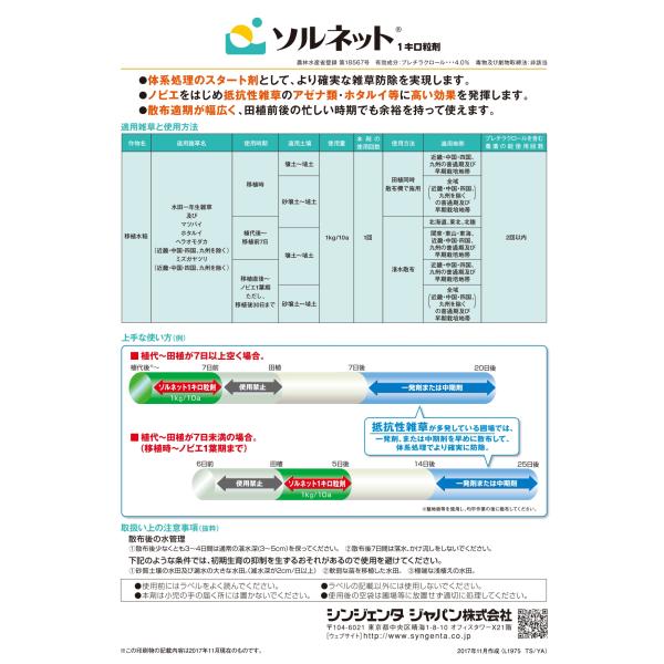 水稲除草剤 ソルネット1キロ粒剤 ※沖縄県・離島対応不可