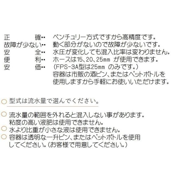 FPS液肥混入器混入機 FPS-4A エフピーエスペットボトルアタッチメント付きサンフレックスAQUA肥料混入
