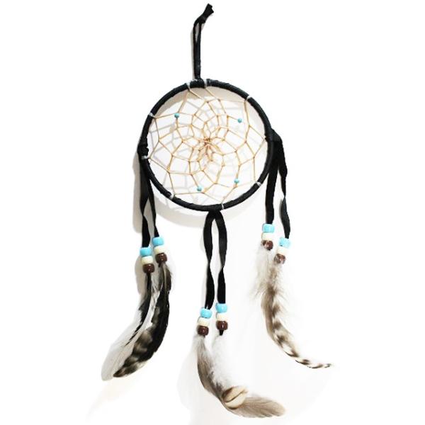 ドリームキャッチャー ブラックレザー インディアン雑貨 インディアンジュエリー 民芸品