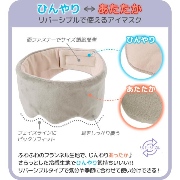 耳まで 包む アイマスク 防音 リバーシブル ひんやり 冷感 あったか アイピロー 手洗いOK 眼精疲労 目の疲れ 睡眠 快眠 安眠 アイケア 耳を温める グッズ 328540