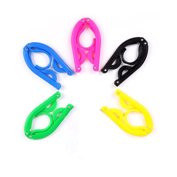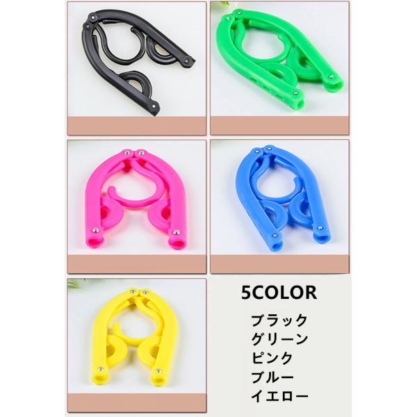 送料無料 洗濯 室内物干し 便利グッズ 折り畳みハンガー5本セット(カラー:ブラック、イエロー(ペールオレンジ)、ピンク、ブルー、グリーン)