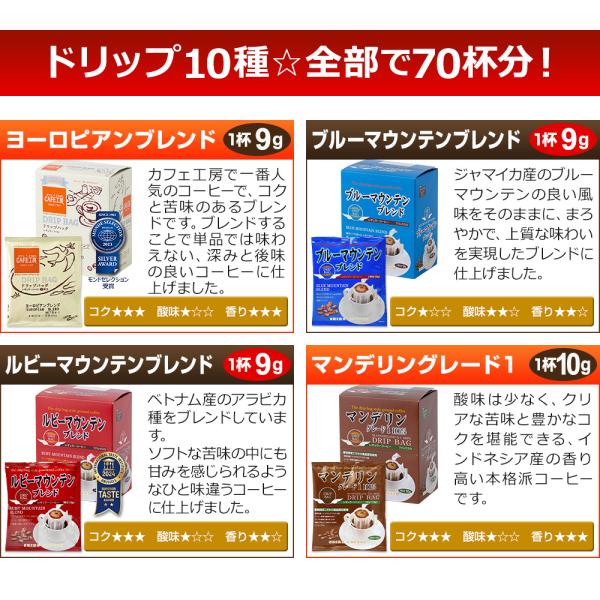 コーヒー ドリップコーヒー 10種70杯バラエティセット(コーヒーアソート7杯×10種 計70袋入) コーヒー通販カフェ工房